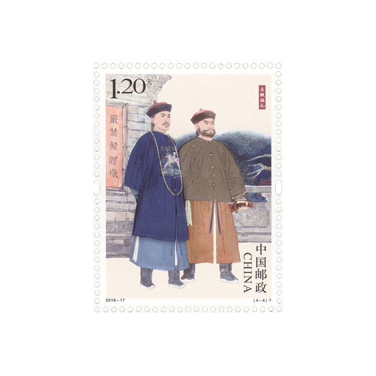 中国邮政定于2018年6月24日发行《清正廉洁(一)》特种邮票,一套4枚。