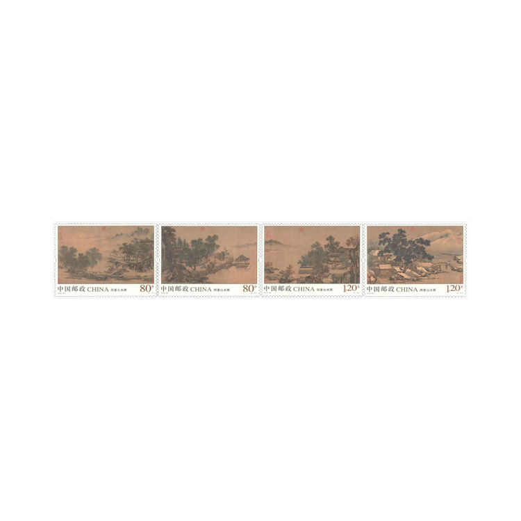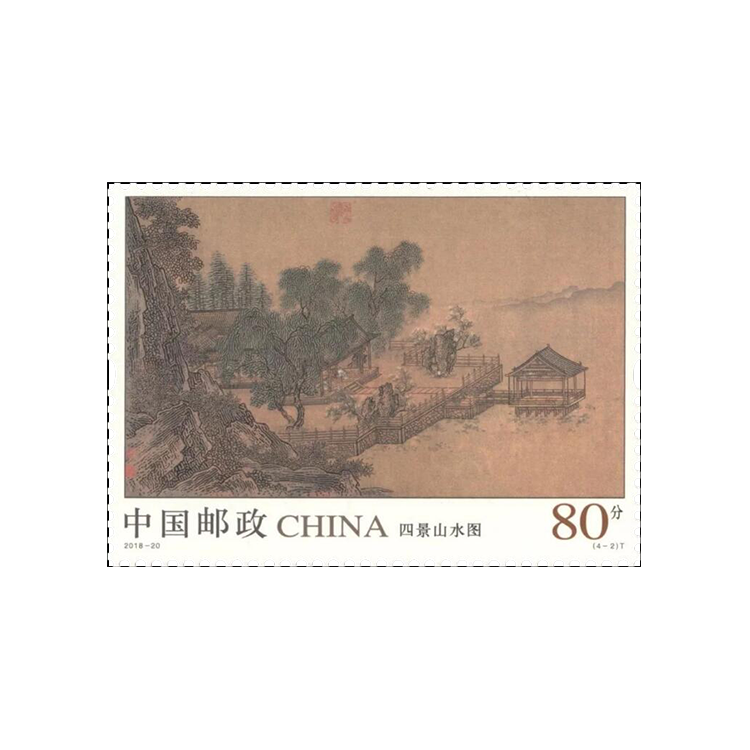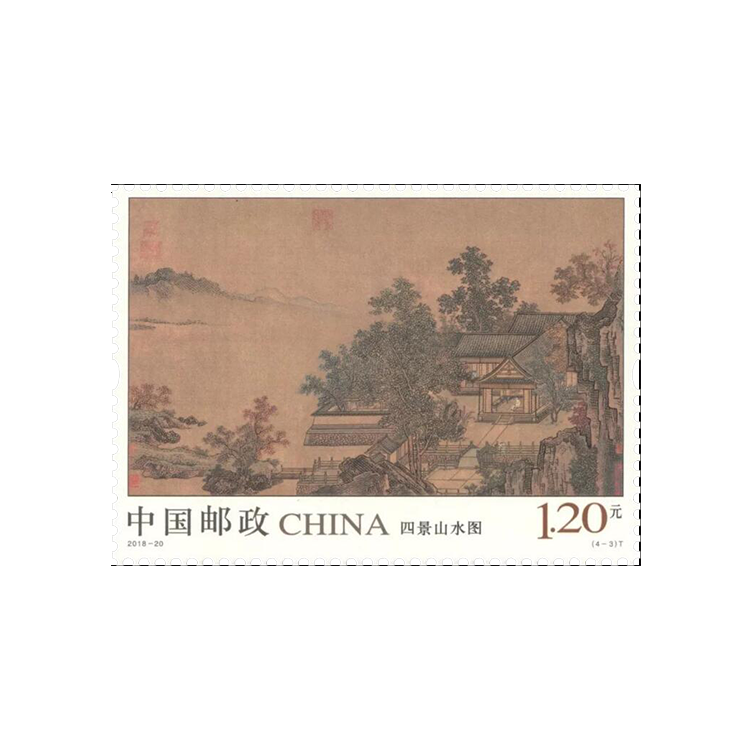 中国邮政定于2018年8月4日发行《四景山水图》特种邮票1套4枚,小全张1枚。