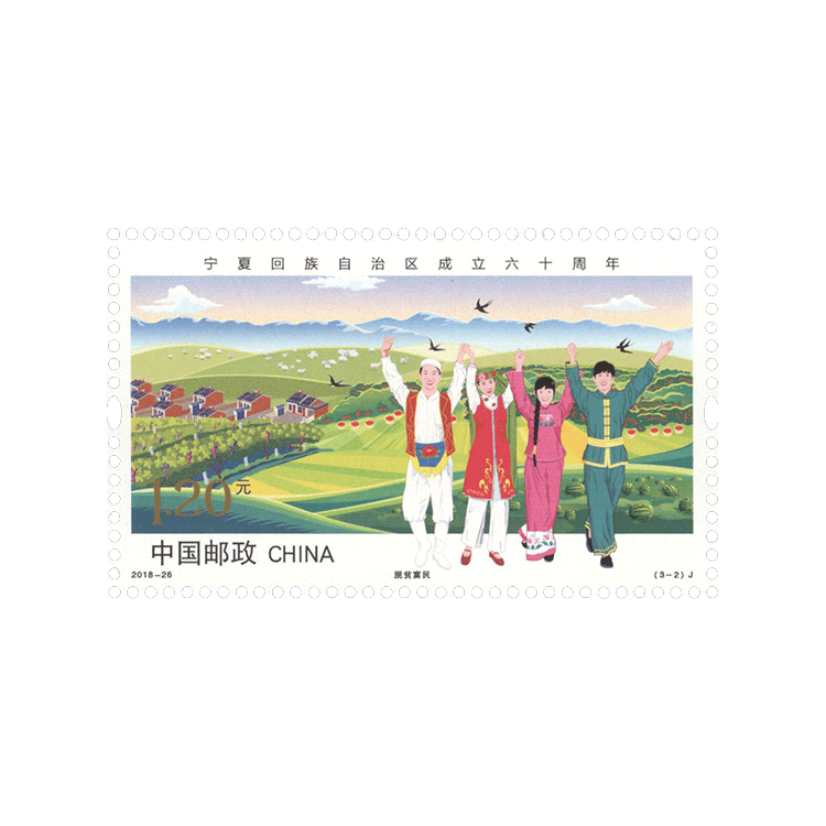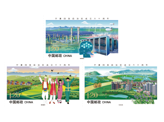 中国邮政2018年9月19日发行《宁夏回族自治区成立六十周年》纪念邮票,一套3枚。