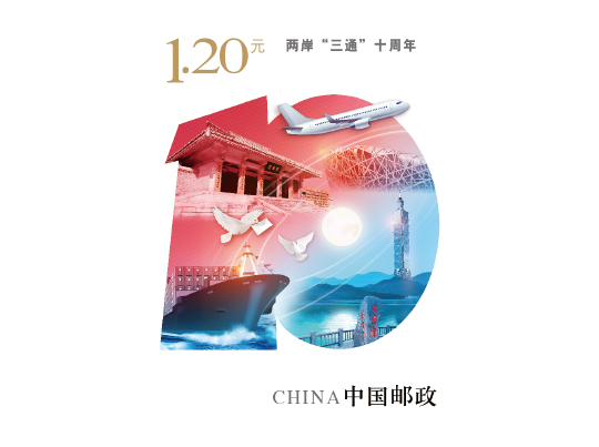 中国邮政定于2018年12月15日发行《两岸“三通”十周年》纪念邮票1套1枚。