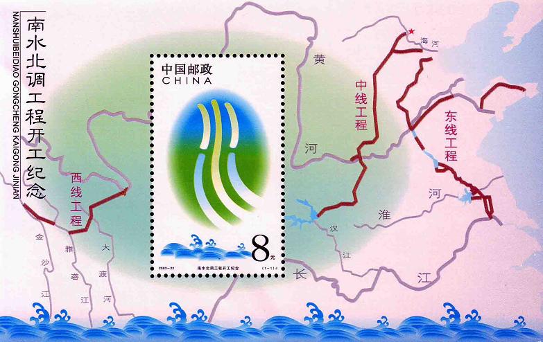 国家邮政局2003年9月26日发行《南水北调工程开工纪念》小型张。