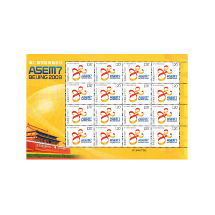 2008年10月24日发行《第七届亚欧首脑会议》纪念邮票1套1枚。