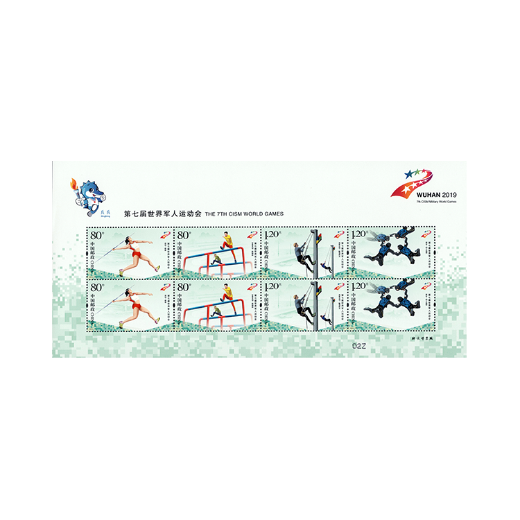 中国邮政定于2019年7月10日发行《第七届世界军人运动会》纪念邮票1套4枚,全套邮票面值为4元。