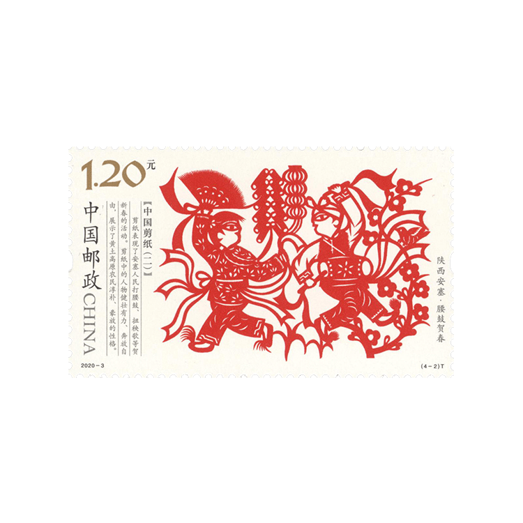 中国邮政定于2020年2月8日发行《中国剪纸(二)》特种邮票1套4枚,全套邮票面值为4.80元。