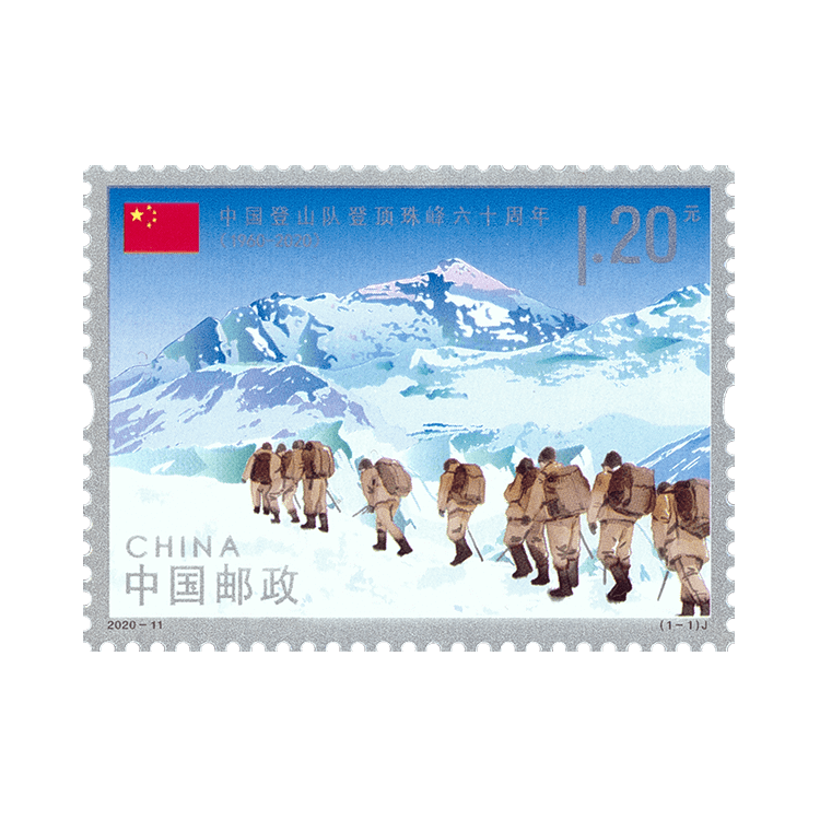 中国邮政定于2020年5月25日发行《中国登山队登顶珠峰六十周年》纪念邮票1套1枚。
