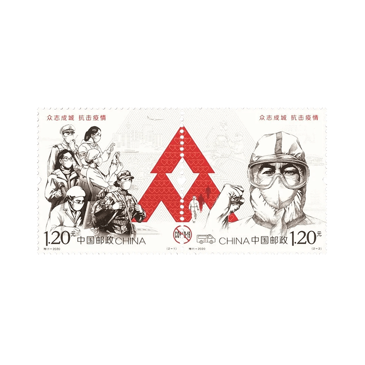 中国邮政定于2020年5月11日特别发行《众志成城 抗击疫情》邮票1套2枚。