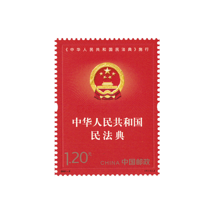 中国邮政定于2021年1月1日发行《<中华人民共和国民法典>施行》纪念邮票一套1枚,邮票面值为1.20元。计划发行数量为800万套。