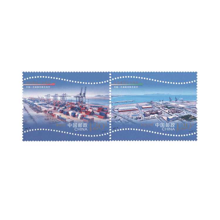 联合发行邮票图案分别选取中国的珠海港和巴基斯坦的瓜达尔港。“珠海港”为中国沿海24个主枢纽港和广东省5个主要港口之一,毗邻港澳,拥有珠三角最高级别的15万吨级主航道和聚合“江海陆铁空”为一体的综合物流体系,是“一带一路”重要港口节点。“瓜达尔港”位于巴基斯坦俾路支省西南沿海,是从非欧大陆经红海、霍尔木兹海峡和波斯湾前往太平洋亚洲东部的多条重要航线的节点,是中巴经济走廊的重要组成部分。
