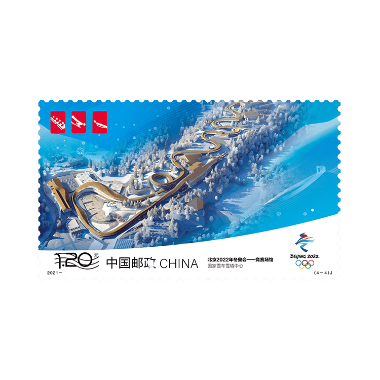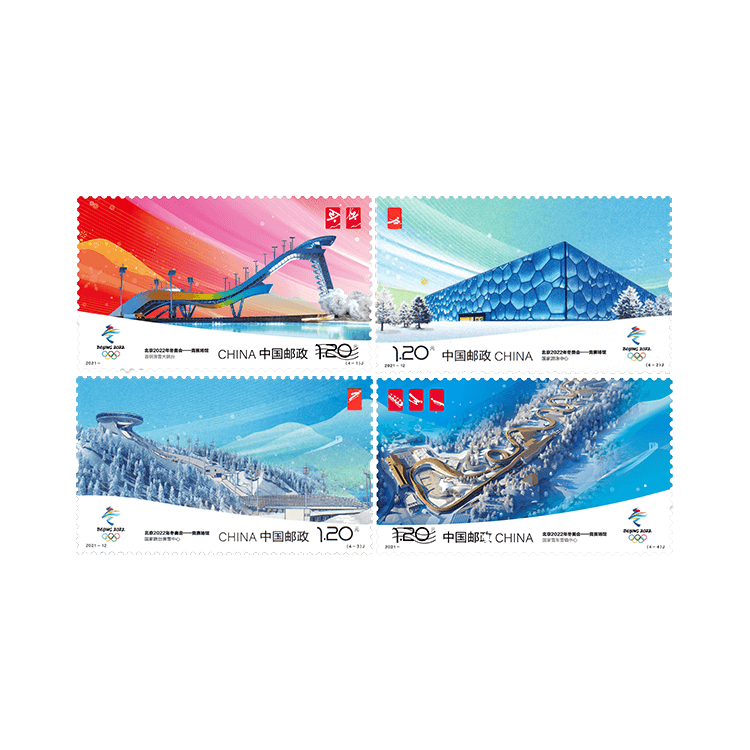 中国邮政定于2021年6月23日发行《北京2022年冬奥会——竞赛场馆》纪念邮票一套4枚,小型张1枚。全套邮票面值为10.80元,邮票计划发行数量为750万套,小型张计划发行数量为630万枚。