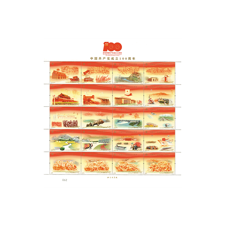 中国邮政定于2021年7月1日发行《中国共产党成立100周年》纪念邮票 1 套 20 枚。