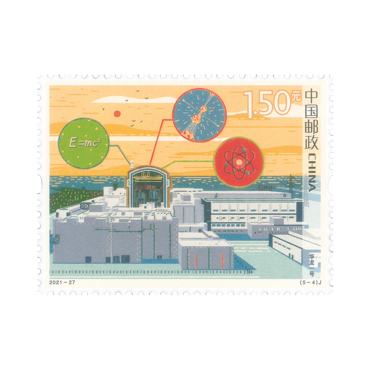 该套邮票由杜钰凯设计,画面延续前两组的系列特点,采用现代手绘插画方式表现,色彩鲜亮明快,画面清新自然。图一主要表现了“嫦娥五号”月球探测器首次实施无人月面取样的工作场景,为中国探月工程三期的收官之战;图二展现的“奋斗者”号全海深载人潜水器是我国首台具备全球海域载人进入能力的重要装备,也是当前全球同类型载人潜水器中载员人数最多、海底作业时间最长、作业能力最强的装备;图三“揭示蝗虫聚群成灾的奥秘”通过蝗虫聚集、4VA化学式等场景画面,表现了化合物4-乙烯基苯甲醚(4VA)是飞蝗群聚信息素这一昆虫学研究重大突破,该研究使蝗虫的绿色和可持续防控成为可能;图四以“华龙一号”为主画面,辅以能量公式、核裂变等元素符号,展现了我国具有完全自主知识产权的第三代压水堆核电创新成果,这一成果标志着我国核电技术水平和综合实力已跻身世界第一方阵;图五以古今对比、DNA链、古地层等为表现元素,形象展现了“古DNA揭秘中国史前人群迁徙动态与族群源流”的画面主题。该成果填补了东方尤其是中国地区史前人类遗传、演化、适应方面的重要信息。
