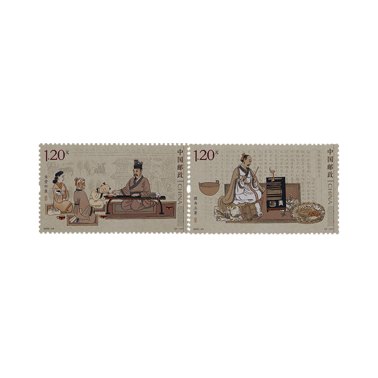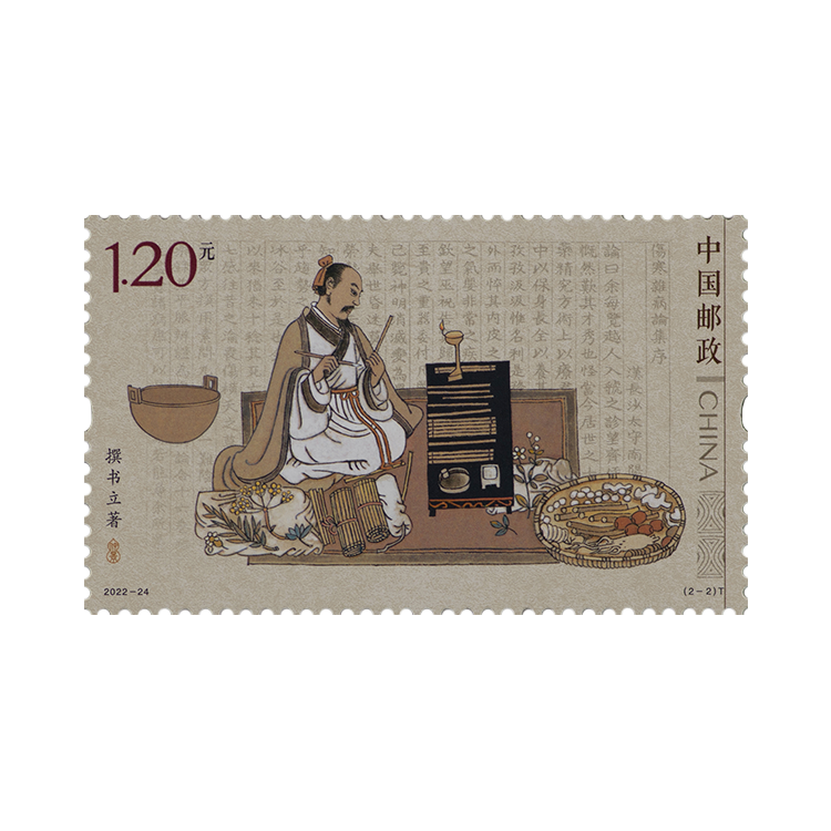 中国邮政定于2022年10月22日发行《张仲景》特种邮票1套2枚,小型张1枚。邮票图案名称为坐堂行医、撰书立著,小型张图案名称为张仲景像。全套邮票面值8.40元。