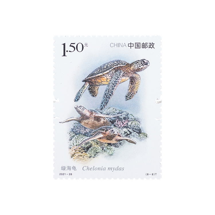 该套邮票由北京邮票厂有限公司印制,采用胶印、柔印、雕刻联合印刷。邮票雕刻布线细腻生动,单枚精雕细刻、整版和谐共融,充分还原野生动物神态细节。“绿孔雀”和“绿海龟”两枚邮票使用特种绿色光变柔印工艺,在阳光的照射下可以看到绿孔雀华美的毛色质感变化和绿海龟生活的海底世界多彩光变效果。邮票采用“山”“水”的双异形齿孔,寓意“山水相连”“保护好山水家园才能保护好野生动物”。此外,邮票边饰使用无色红荧光油墨,在紫光灯下呈现另一幅充满生机的画面。