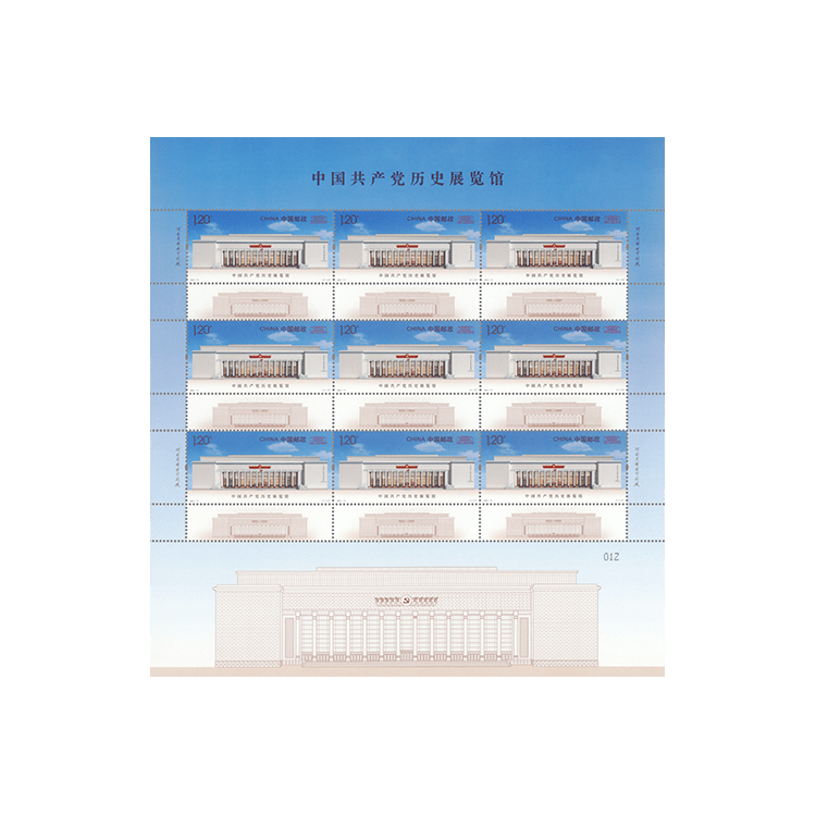 建设中国共产党历史展览馆,是以习近平同志为核心的党中央作出的重大决策。为祝贺中国共产党历史展览馆正式开馆,经国家邮政局批准,2021年增发《中国共产党历史展览馆》特种邮票1套1枚,邮票面值为1.20元,发行数量为820万套,由中国邮政集团有限公司发行。