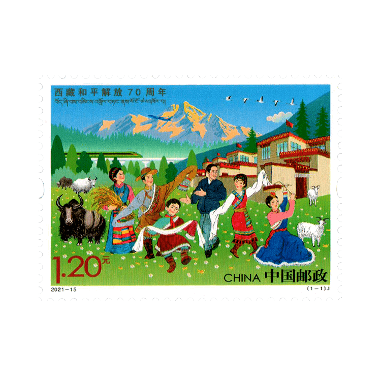 中国邮政定于2021年8月19日发行《西藏和平解放70周年》纪念邮票1套1枚。全套邮票面值1.20元。邮票计划发行数量700万套。