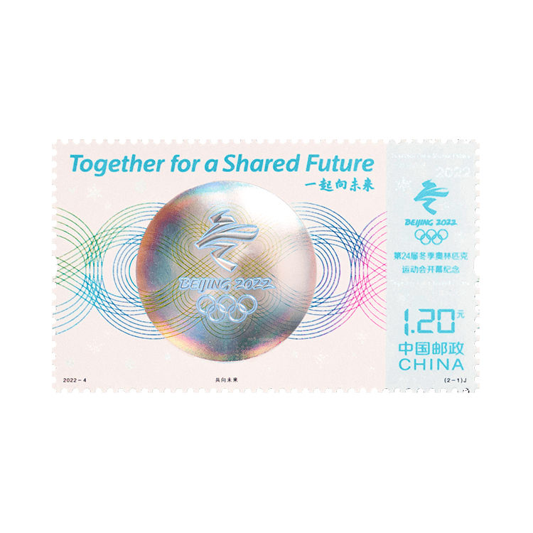 中国邮政定于2022年2月4日发行《第24届冬季奥林匹克运动会开幕纪念》纪念邮票一套2枚,邮票图案名称为共向未来、希望之光。全套邮票面值2.40元。邮票计划发行数量为1150万套。