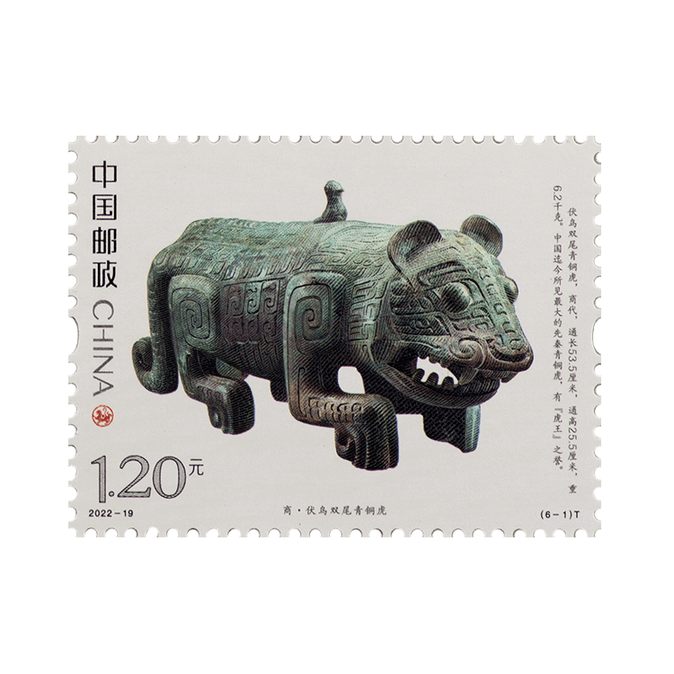 中国邮政定于2022年9月5日发行《虎(文物)》特种邮票一套6枚。