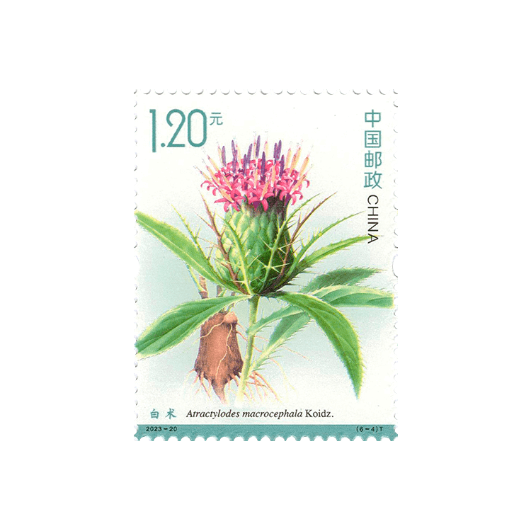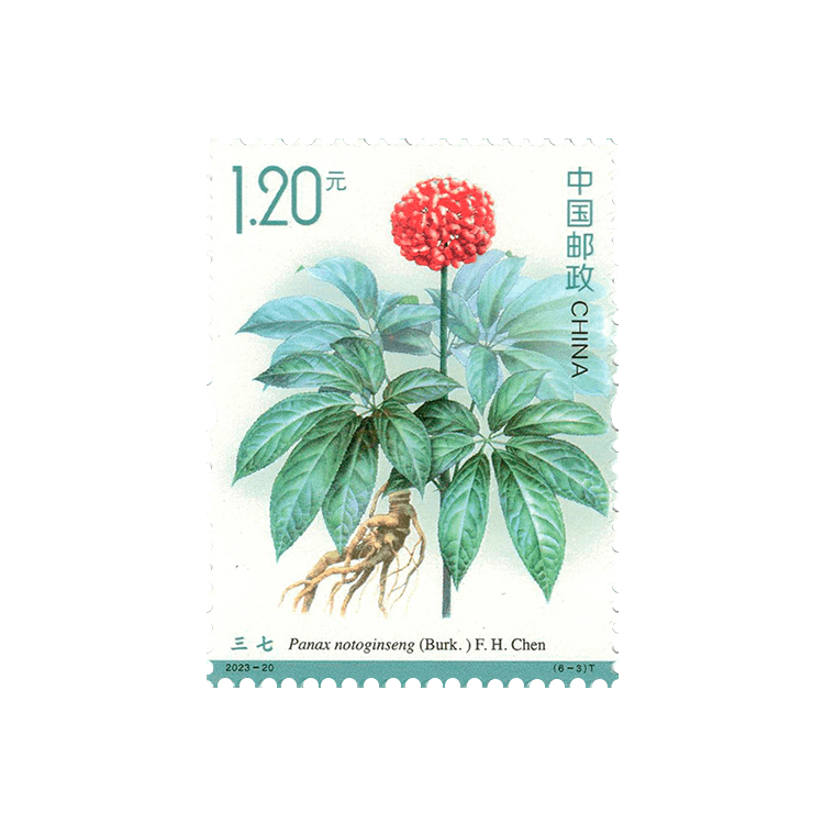 中国邮政定于2023年10月11日发行《药用植物(三)》特种邮票一套6枚,邮票图案名称为黄花蒿、忍冬、三七、白术、连翘和红花。全套邮票面值6.40元。