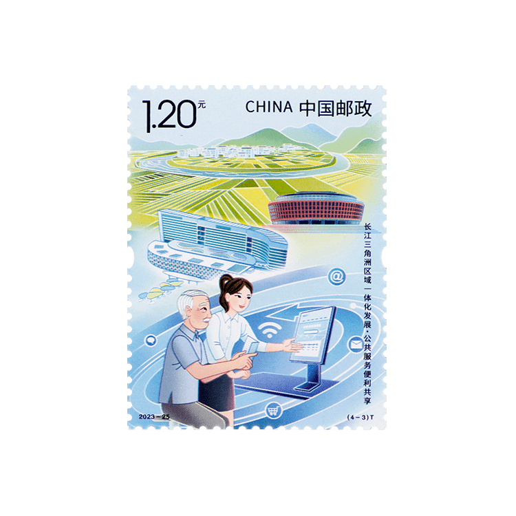 中国邮政定于2023年12月1日发行《长江三角洲区域一体化发展》特种邮票一套4枚,邮票图案名称分别为科创产业融合发展、生态环境共保联治、公共服务便利共享、高水平协同开放。全套邮票面值4.80元。邮票计划发行数量为719.8万套。