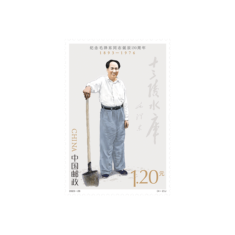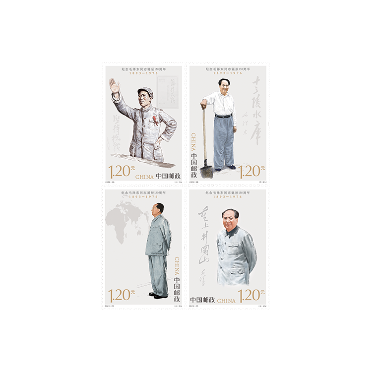 中国邮政定于2023年12月26日发行《纪念毛泽东同志诞辰130周年》纪念邮票1套4枚,邮票图案名称分别为坚持抗战、建设十三陵水库、胸怀天下、重上井冈山。全套邮票面值4.80元。