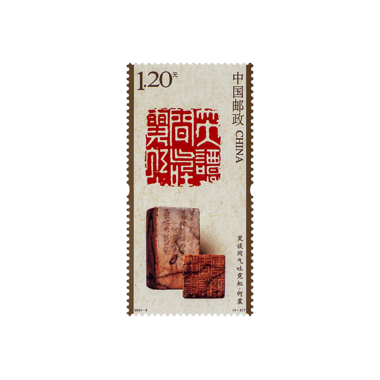 中国邮政定于2024年3月20日发行《中国篆刻(二)》特种邮票1套4枚,邮票图案名称分别为:琴罢倚松玩鹤・文彭;笑谈间气吐霓虹・何震;子孙非我有 委蜕而已矣・汪关;但看花开谢 不言人是非・程邃。全套邮票面值4.80元。邮票计划发行数量为套票698万套,版式二90万版。