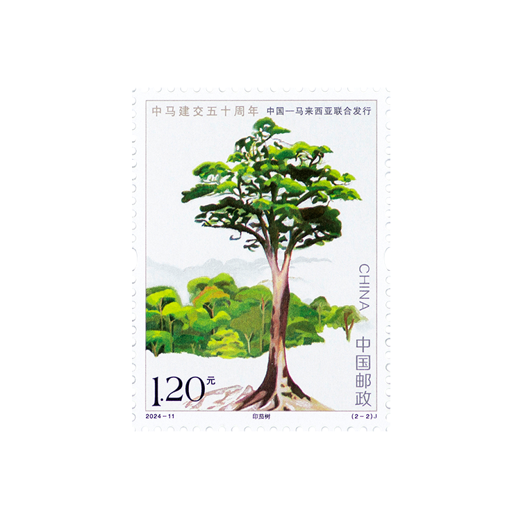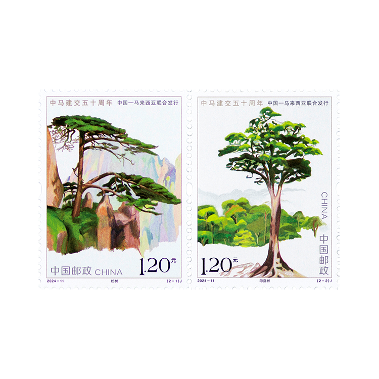 中国邮政定于2024年5月31日发行《中马建交五十周年》纪念邮票1套2枚,该套邮票与马来西亚联合发行,邮票图案名称为松树、印茄树。全套邮票面值2.40元。邮票计划发行数量为665万套。