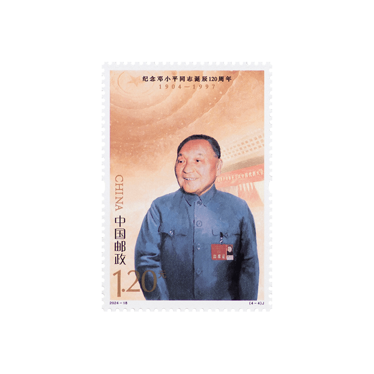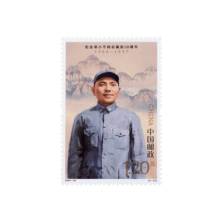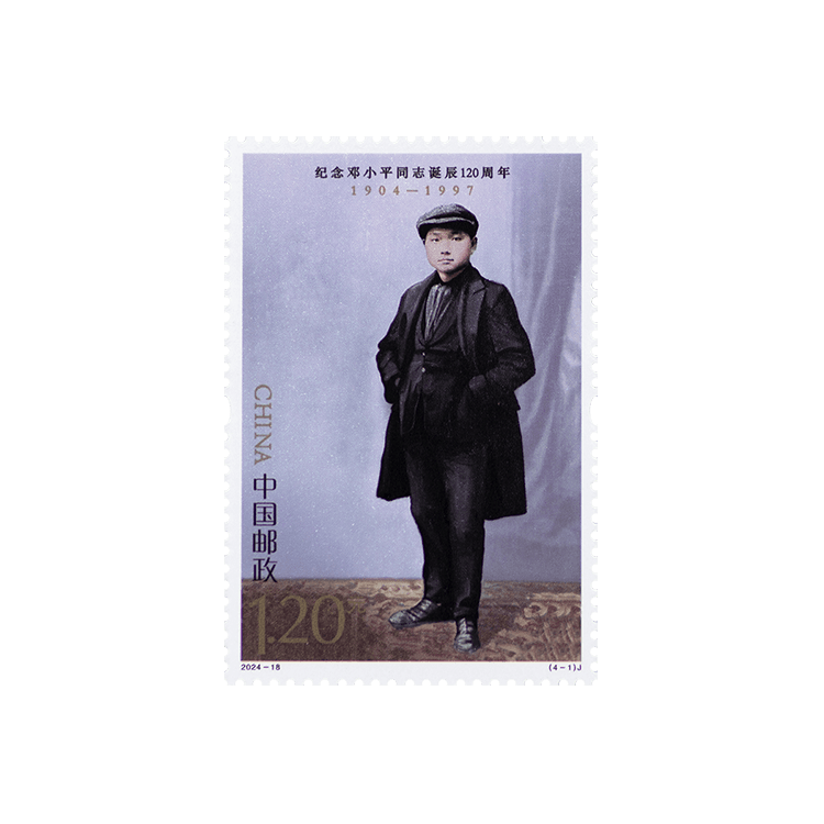 邓小平同志是全党全军全国各族人民公认的享有崇高威望的卓越领导人,伟大的马克思主义者,伟大的无产阶级革命家、政治家、军事家、外交家,久经考验的共产主义战士,中国社会主义改革开放和现代化建设的总设计师,中国特色社会主义道路的开创者,邓小平理论的主要创立者。邮票第一图“勤工俭学”,邓小平同志16岁远渡重洋勤工俭学,并在那里接受了马克思主义,加入中国共产党,从此矢志不渝为党和人民事业奋斗了70多年;第二图“戎马岁月”,抗日战争和解放战争期间,邓小平同志坚决执行党中央和毛泽东同志的战略决策,军政兼任、勇挑重担,不畏艰险、出奇制胜,一直处在战略全局的关键位置,处在对敌斗争的最前线;第三图“科学春天”,1978年,党中央召开全国科学大会,邓小平同志在大会上作出科学技术是生产力的重要论断,我国迎来“科学的春天”;第四图“改革开放”,党的十一届三中全会以后,邓小平同志始终站在时代要求、国家发展、人民期待的高度,同中央领导集体一起,领导我们党作出一系列重大决策,把改革开放和社会主义现代化建设一步一步推向前进。