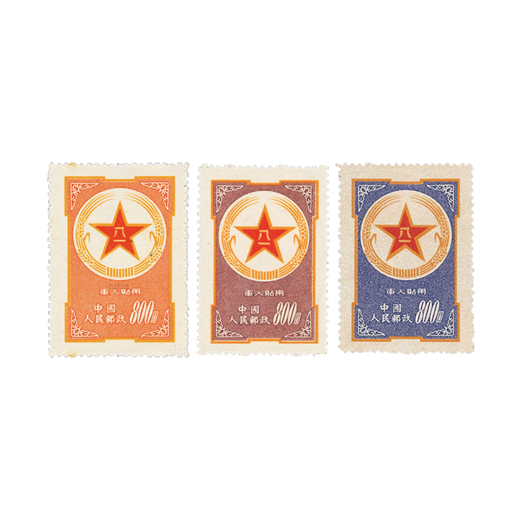 这套邮票于1953年7月初开始印制,拟定于1953年8月1日发行,是新中国第一套军用邮票。邮票分批印完,陆续下发到各部队和军事机关,每位官兵每月可得到2枚用于通信。下发后,有的部队反映,在没有信箱代号的情况下使用军人贴用邮票容易泄密,邮票使用范围和对象也难以控制等等。鉴于此,决定“延期实行”,停止使用。后来,没有下发的邮票也全部销毁。但在个人手中的军人贴用邮票仍被使用。这三种邮票都流出一些,其中蓝色“军人贴用”邮票印成较晚,留存下来的数量最少,成为罕品。