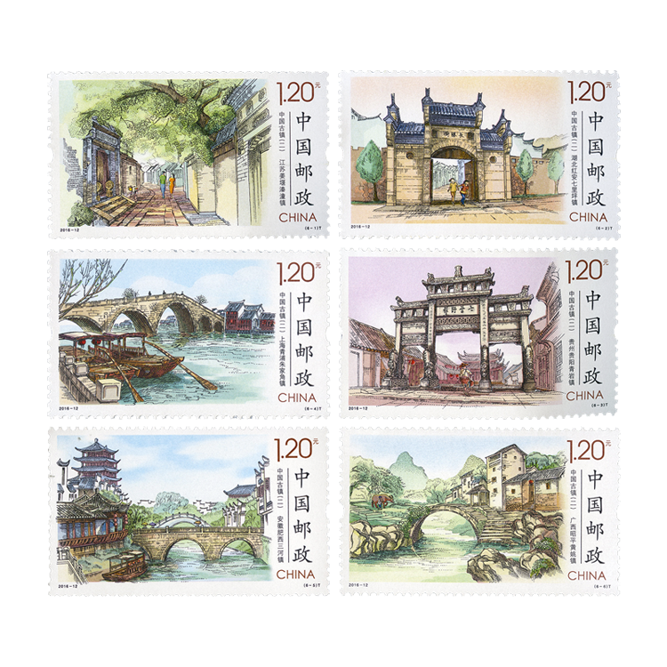 中国邮政2016年5月19日发行《中国古镇(二)》特种邮票1套6枚。