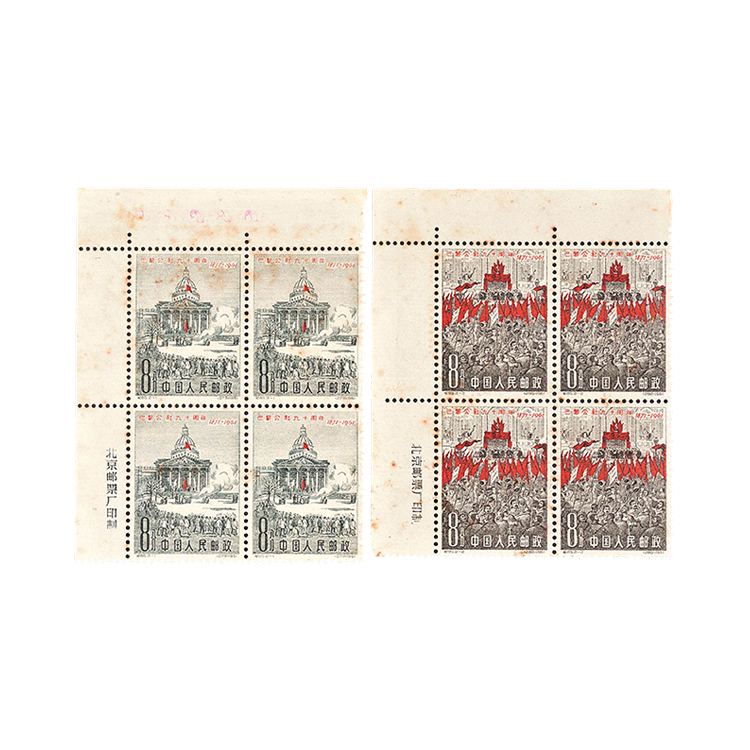 值此巴黎公社90周年之际,1961年3月18日邮电部为缅怀那段悲壮而光辉的历史,悼念那些为公社而牺牲流血的英雄发行了这套纪念邮票,1套2枚。