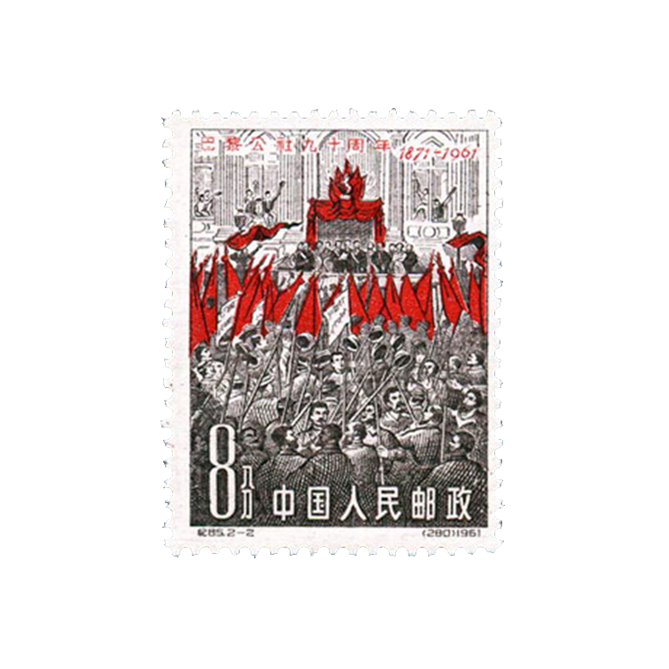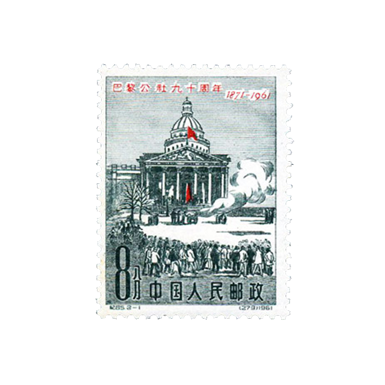 1961年3月18日,在巴黎公社90周年之际,为缅怀那段悲壮而光辉的历史,悼念那些为公社而牺牲流血的英雄,邮电部发行了《巴黎公社九十周年》纪念邮票,1套2枚。