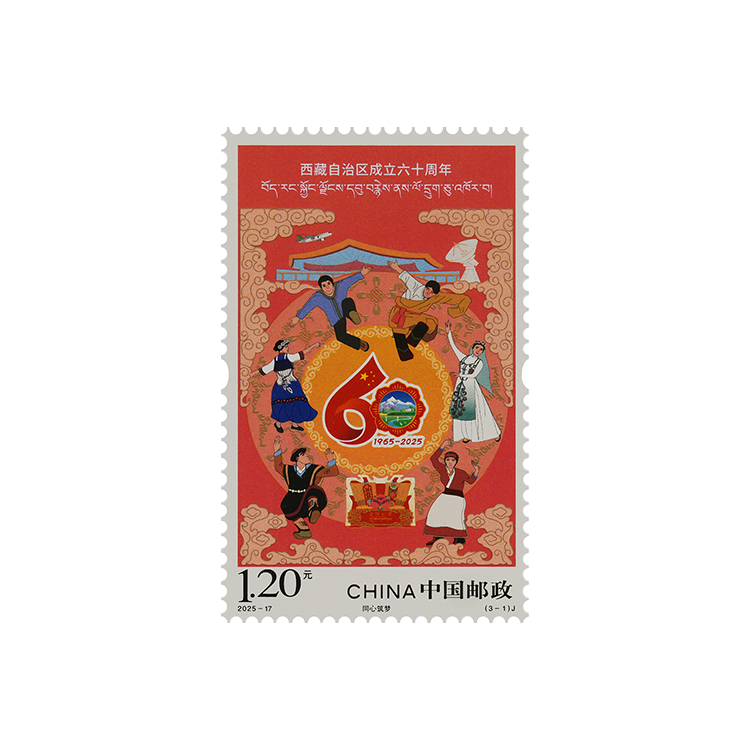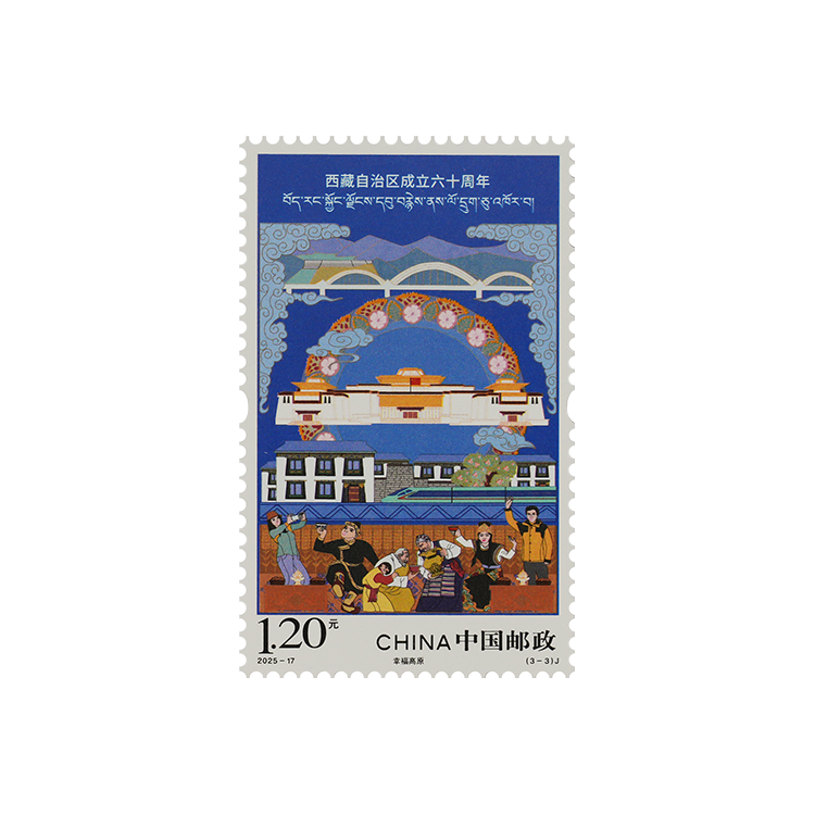 中国邮政定于2025年8月15日发行《西藏自治区成立六十周年》纪念邮票1套3枚。