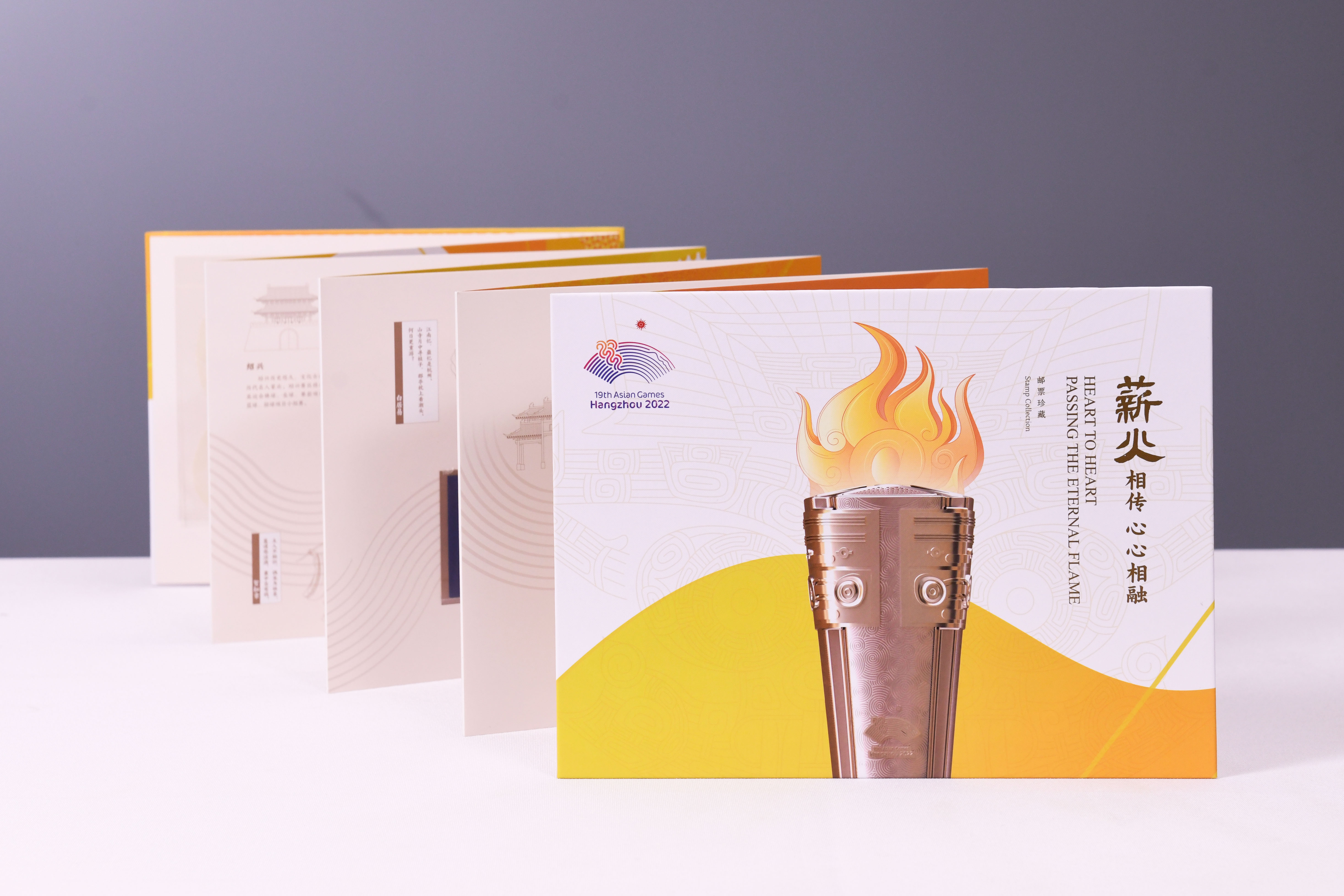中国集邮有限公司于2023年9月8日发行《薪火相传 心心相融》杭州亚运会火炬传递主题风琴邮折。