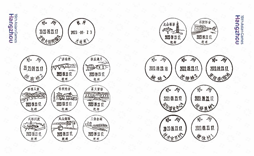 产品收录所有竞赛场馆在杭州亚运会开幕日2023年9月23日的邮戳,供集藏爱好者和游客珍藏。
