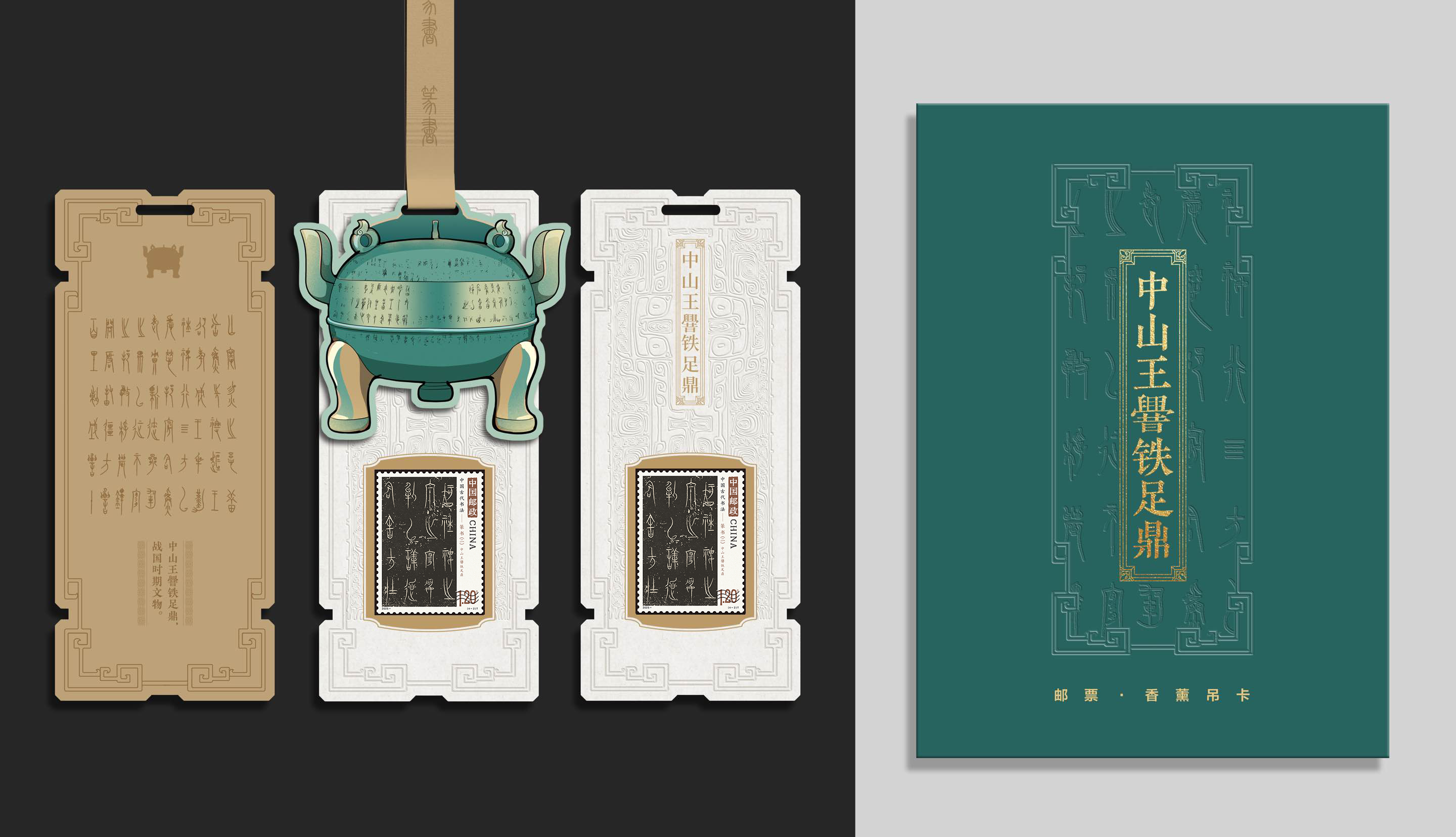 《中国古代书法——篆书(二)》邮票·香薰吊卡由一枚文物造型的香卡和一枚镶嵌了邮票的吊卡组成,为您带来视觉艺术与嗅觉艺术的沉浸式文化体验。它可以是一枚书签,也可以是一个车挂,可以是屋间的一个香薰,亦可以是一个小小的艺术品。此产品不仅收藏了国家名片,让古老文字在方寸间焕发生机,也让历史的芬芳萦绕指尖。