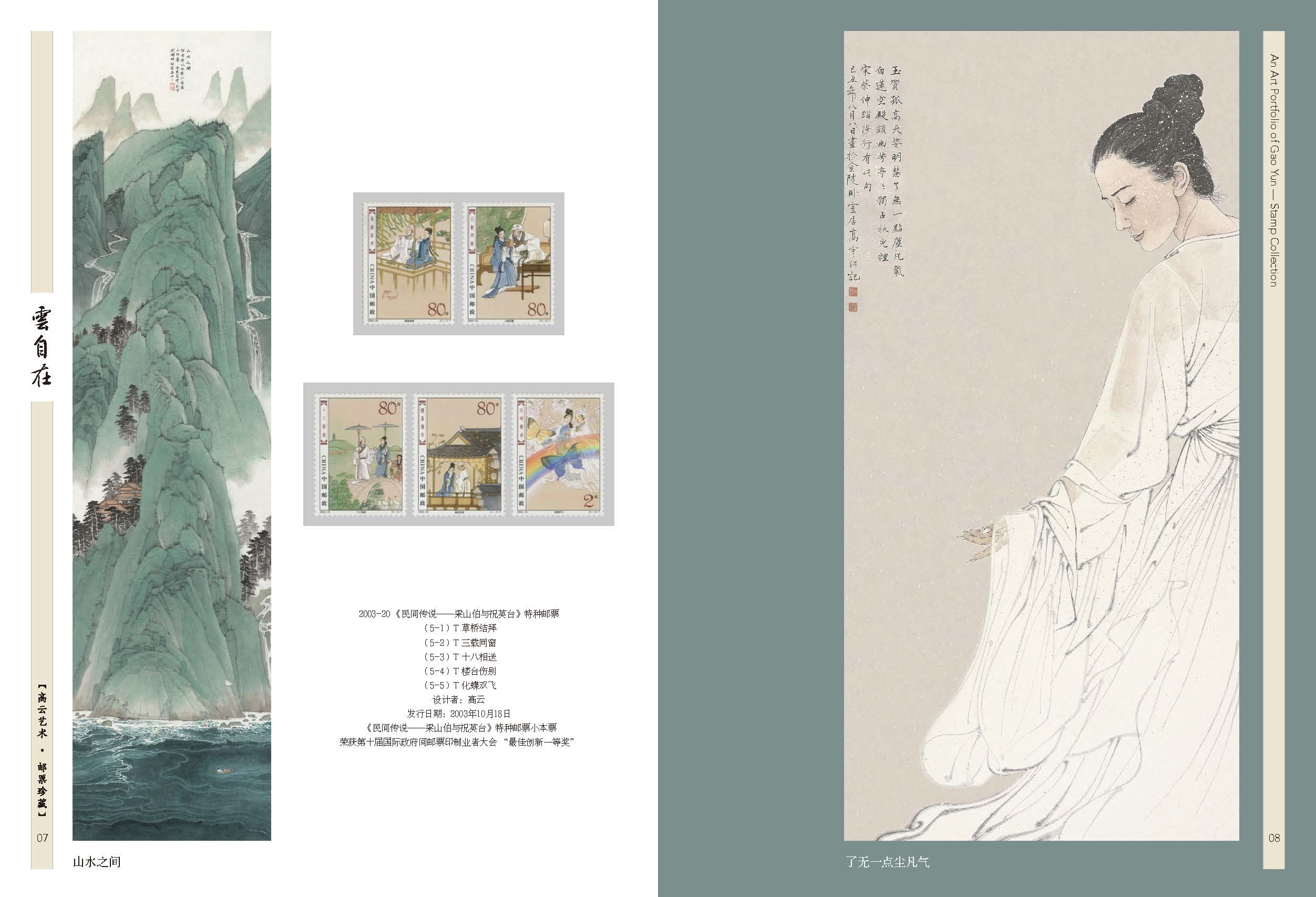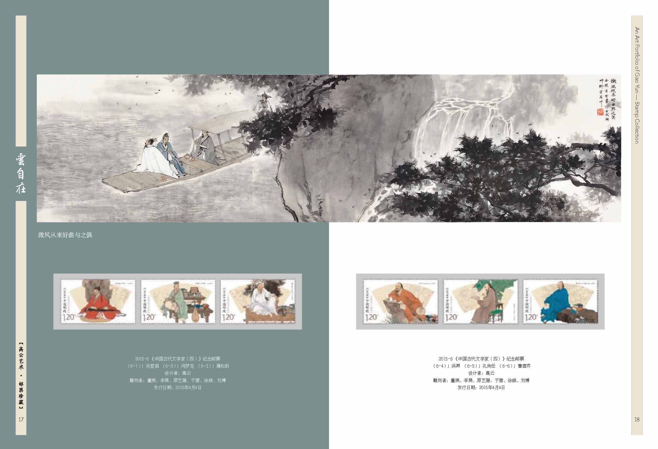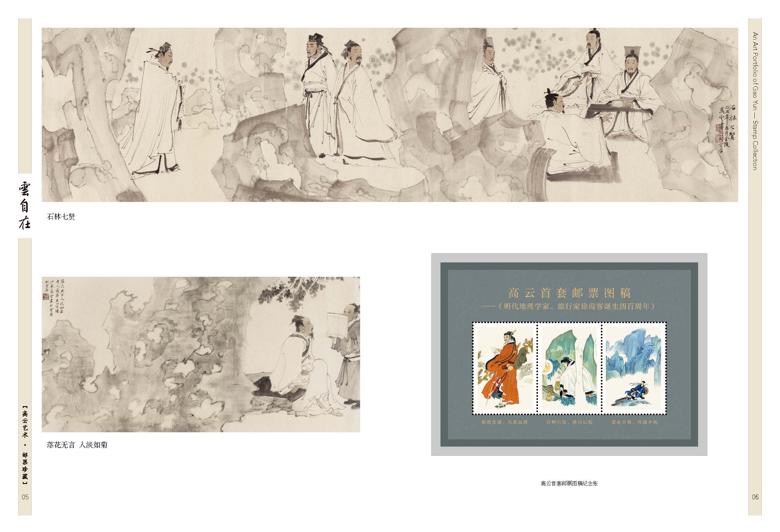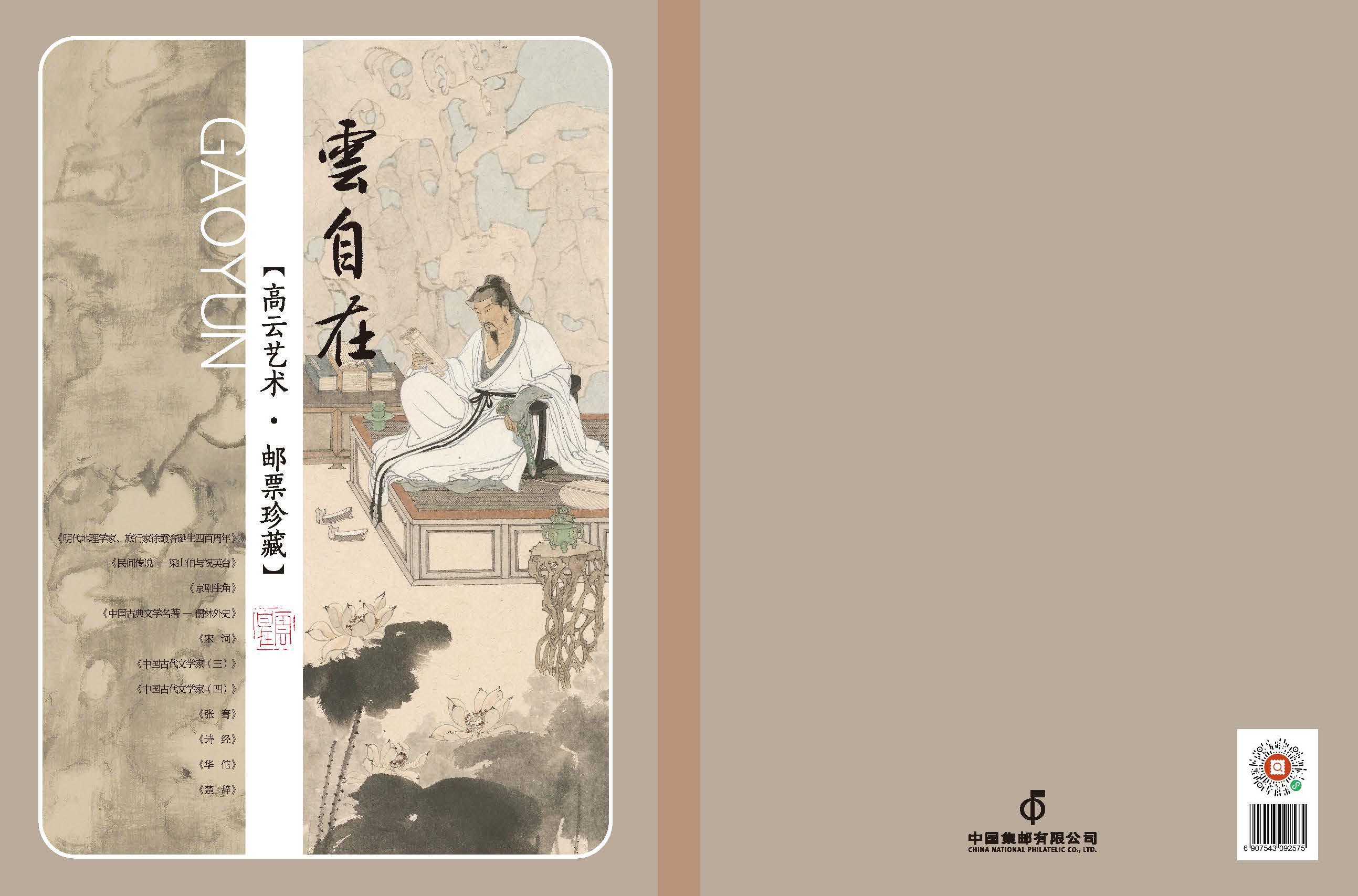2003-20《民间传说—梁山伯与祝英台》套票、2012-23《宋词》套票版、2013-23《中国古代文学家(三)》套票、2017-24《张骞》套票、2020-18《华佗》套票、2025-8《楚辞》套票版、J.136《纪念徐霞客诞生四百周年》套票、2007-5《京剧生角》套票、2011-5《儒林外史》套票、2015-6《中国古代文学家(四)》套票、2018-24《诗经》套票版、《高云首套邮票作品》宣纸纪念张、《云自在》金属书签