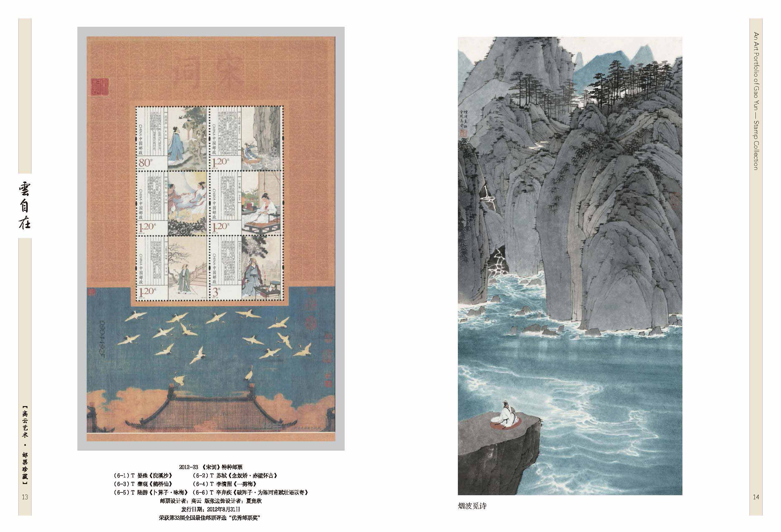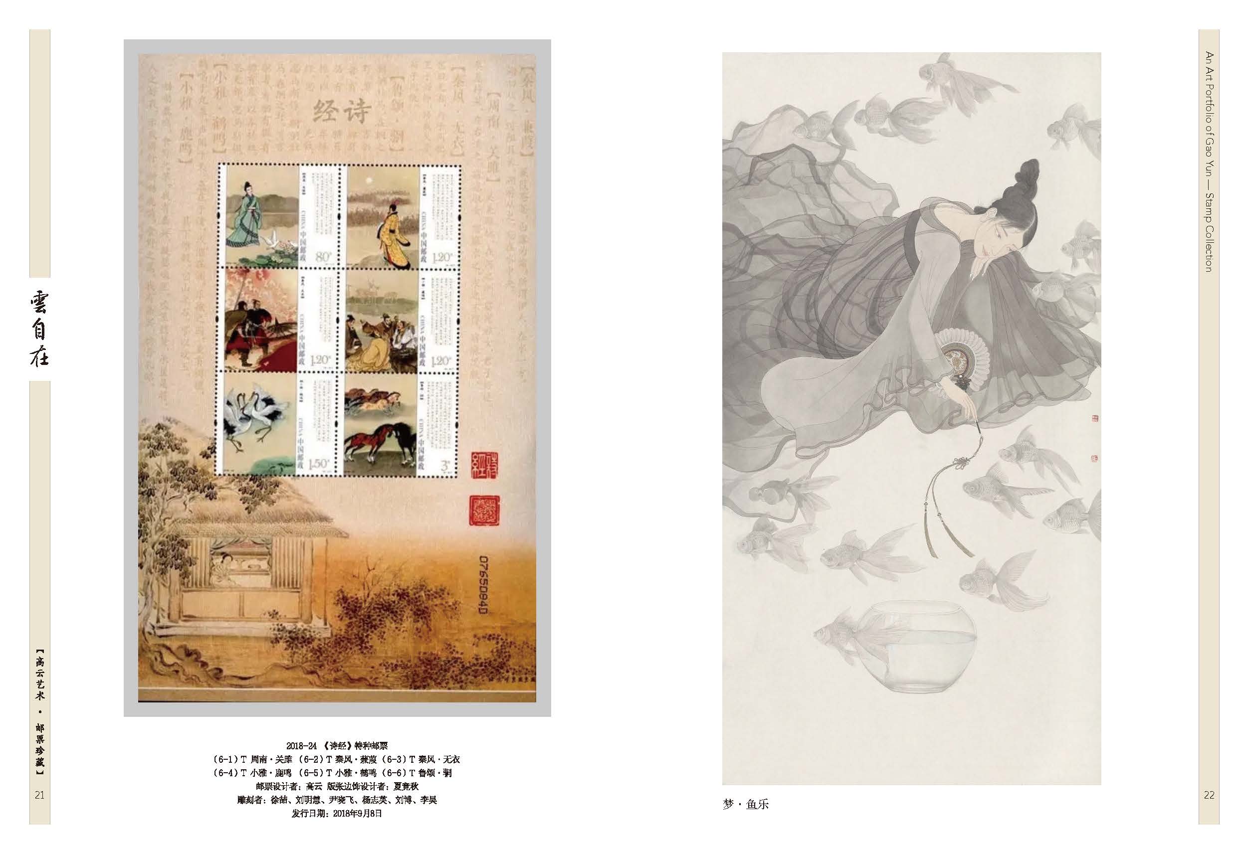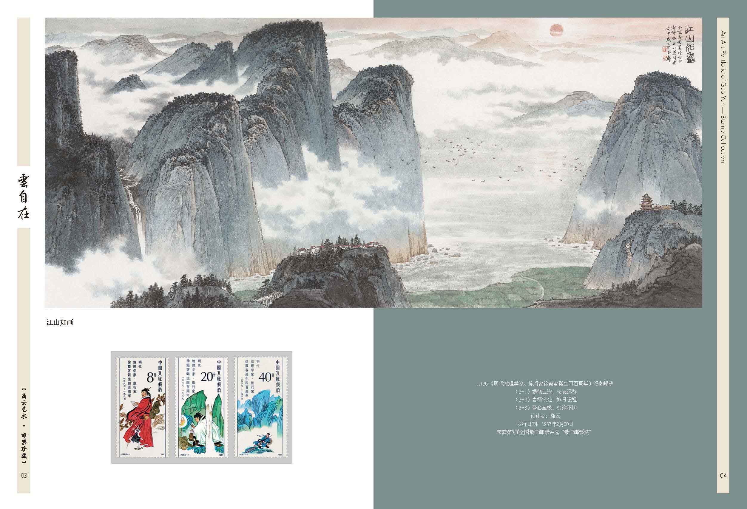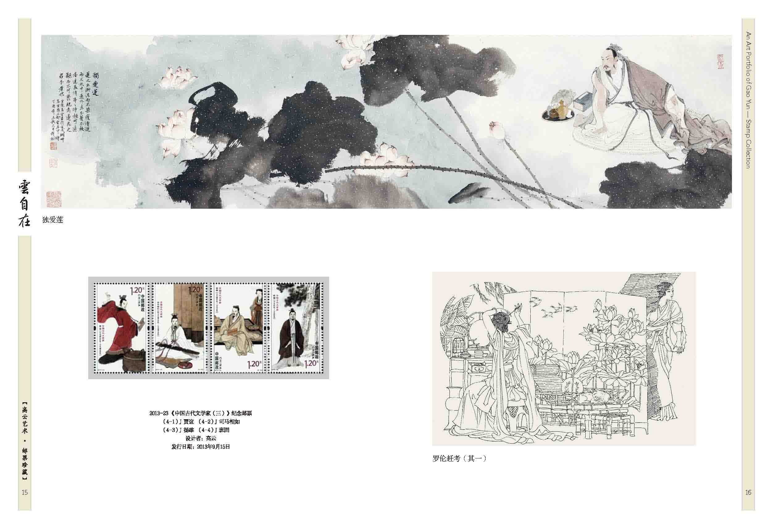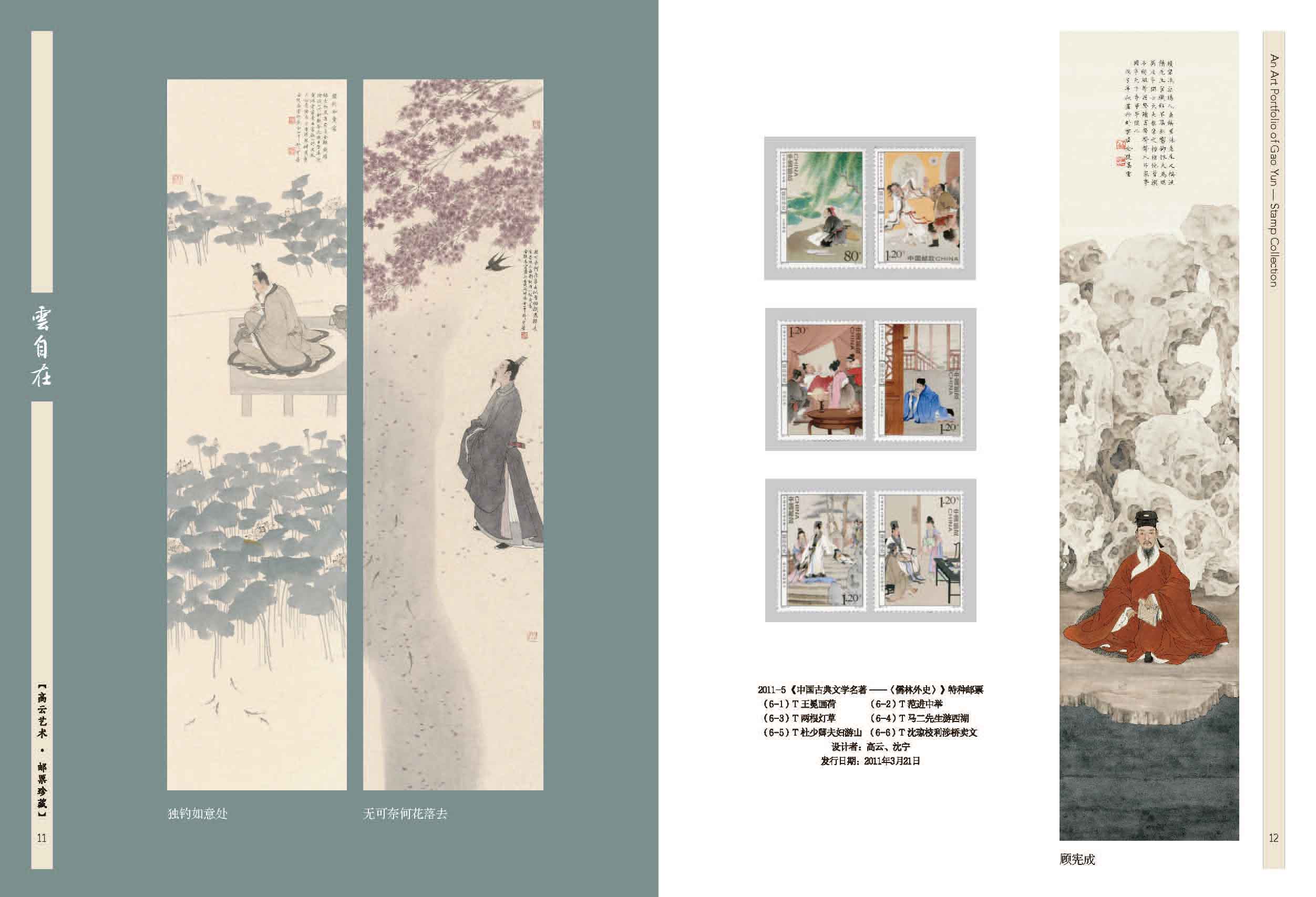 2003-20《民间传说—梁山伯与祝英台》套票、2012-23《宋词》套票版、2013-23《中国古代文学家(三)》套票、2017-24《张骞》套票、2020-18《华佗》套票、2025-8《楚辞》套票版、J.136《纪念徐霞客诞生四百周年》套票、2007-5《京剧生角》套票、2011-5《儒林外史》套票、2015-6《中国古代文学家(四)》套票、2018-24《诗经》套票版、《高云首套邮票作品》宣纸纪念张、《云自在》金属书签