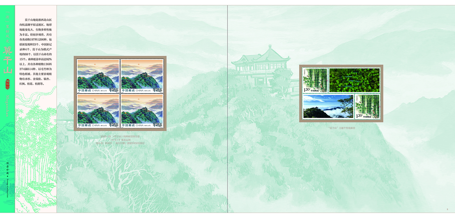中国集邮有限公司于2025年9月22日发行《“浙”里好风光-莫干山》卡书一款。