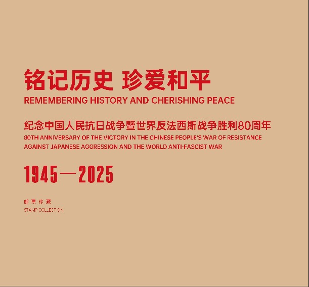 中国集邮有限公司于2025年9月3日发行《铭记历史 珍爱和平》中国人民抗日战争暨世界反法西斯战争胜利八十周年邮折。内含《中国人民抗日战争暨世界反法西斯战争胜利八十周年》整版、小型张,中国香港、中国澳门发行的同题材邮票小型张及邮票。