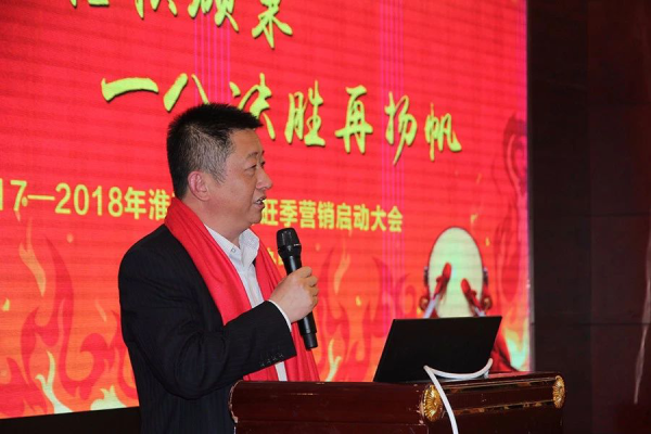 他作为“行内营销冠军”在淮南市分行2018年度旺季营销启动大会上发言