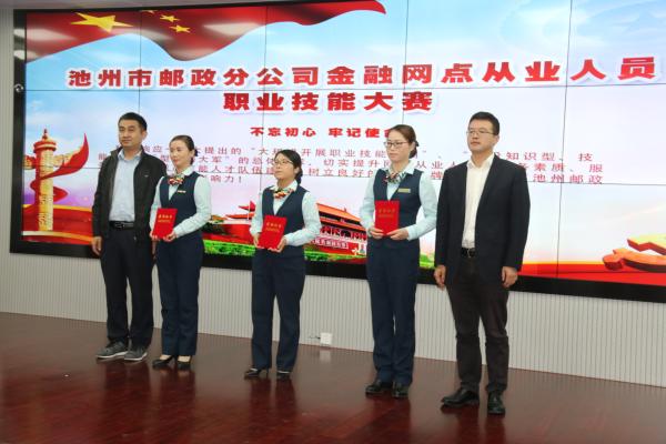 10月26日上午,池州市分公司金融网点从业人员职业技能大赛在市分公司多功能厅隆重举行。市县(区)领导班子成员、市分公司各部门主要负责人、区县分公司金融中心负责人、全市邮政金融网点负责人到场为选手们加油助阵。市邮政管理局、市总工会、团市委、市邮储银行等单位相关领导应邀出席,并为获奖团队及选手颁奖。