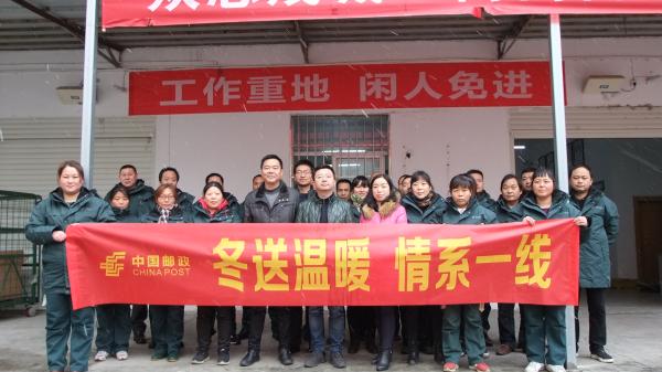 刘总一行先后来到城区投递部及土关垭支局等为奋战在基层一线的投递员们等外勤人员送去了防寒服,叮嘱大家寒冬天气出班要做好保暖工作。在支局,刘总关切询问支局投递人员旺季生产生活情况,将市公司准备的防寒服亲手为投递员披上,并特别强调雨雪天气一定要注意行车安全。