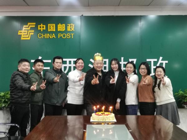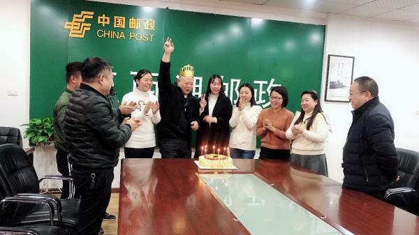 12月19日,武汉市东西湖区邮政工会为9名本月过生日的员工集体庆生,让他们度过了一个美好难忘的生日。区分公司负责人张春平、工会主席王汉江及机关管理人员代表到活动现场为员工送上了关怀与祝福。
