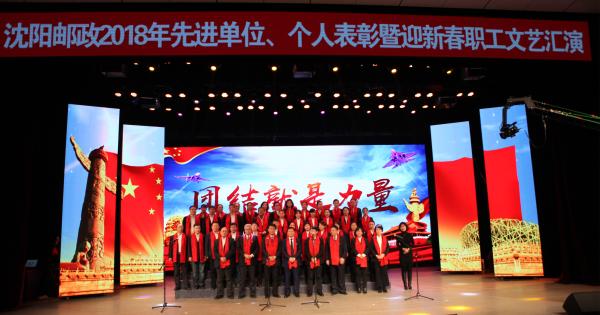 1月24日下午,沈阳市分公司在市文化宫剧场举办以“沈阳邮政·我的家”为主题的2018年先进单位、个人表彰暨迎新春职工文艺汇演。活动现场灯火璀璨、磅礴大气,一派喜庆景象,观众和演员脸上洋溢着欢乐的笑容。市分公司领导班子与离退休老同志、员工代表们欢聚一堂,共同庆贺硕果累累的2018年,迎接充满希望的2019年。