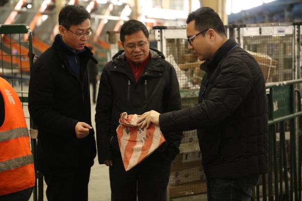随后,丁永红来到邮件处理中心生产场地,详细询问了该局春节前旺季生产情况。在手工作业区,丁永红详细了解了手工处理情况,并饶有兴致的拿起一件包裹仔细查看了邮件的收寄规格及信息,要求大家时刻牢记“以用户为中心”,确保在春节来临前能快速、准确、安全地将一件件包裹、一份份信函送达到用户手中,不辜负用户对邮政的信任。