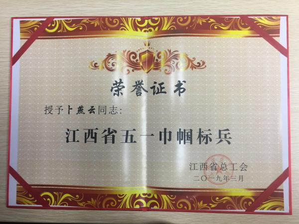 据悉,为大力弘扬劳模精神、劳动精神、工匠精神,宣传女职工在推动江西经济平稳健康发展中作出的突出贡献,营造劳动关荣、技术宝贵、创造伟大的时代风尚,进一步激励广大女职工立足新时代、担当新使命、彰显新作为、展现新风采,江西省总工会决定授予80个集体为2018年度“江西省五一巾帼标兵岗” 荣誉称号、80名同志为2018年度“江西省五一巾帼标兵”荣誉称号、20名同志为2018年度“江西省女创业带头人”荣誉称号。(江西省邮政工会)
