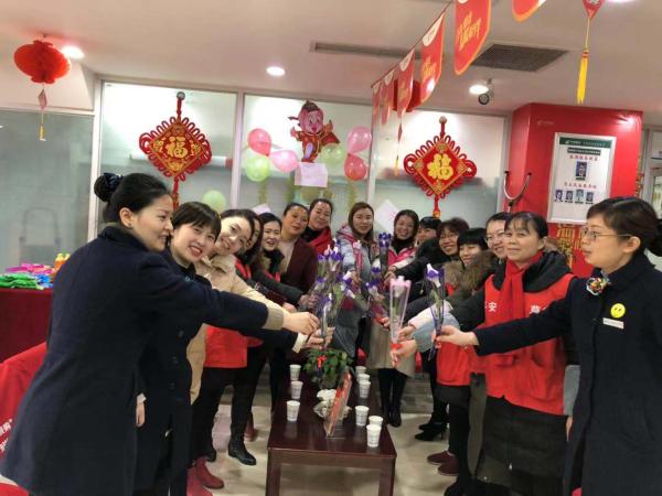 活动共持续4天,凡3月7日-10日前来网点办理业务者,均可获得一枝漂亮的鲜花,不仅如此,3月8日当天,分公司各个网点还举办了客户联谊会,将妇女主任、重要女性客户邀请到网点,开展了猜谜语等游戏,为优胜者送上口红、丝巾、梳子等奖品,拉近了与客户之间的距离。