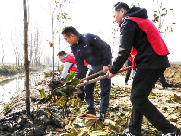 在活动现场,大伙们一起挖树坑、扶树苗、培土固基、围堰浇水,共植玉兰树50余棵,对沟渠和堤坡起到了两岸添绿和防水土流失的双重效果。