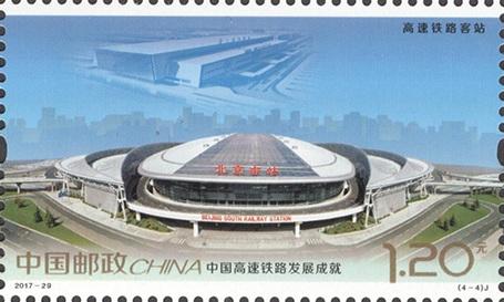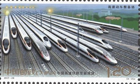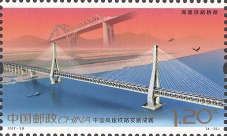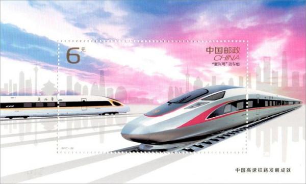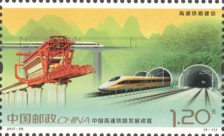 中国邮政2017年11月25日发行《中国高速铁路发展成就》纪念邮票1套4枚,小型张1枚。