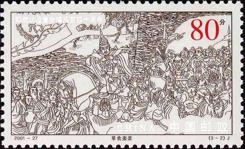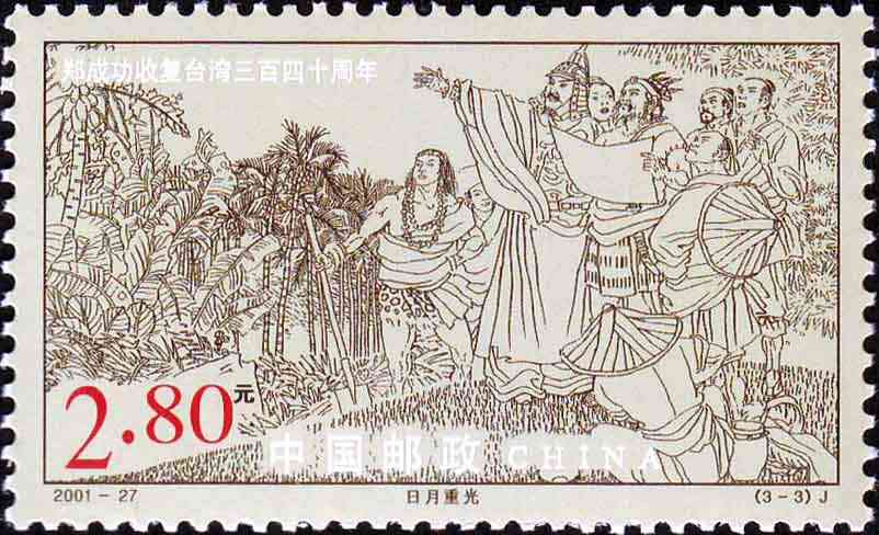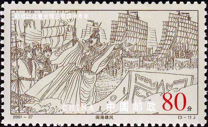 国家邮政局2001年12月13日发行《郑成功收复台湾340周年》纪念邮票1套3枚。